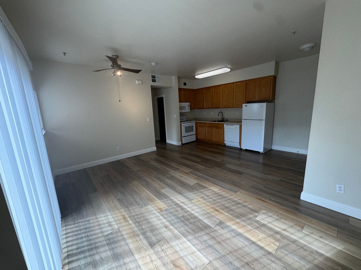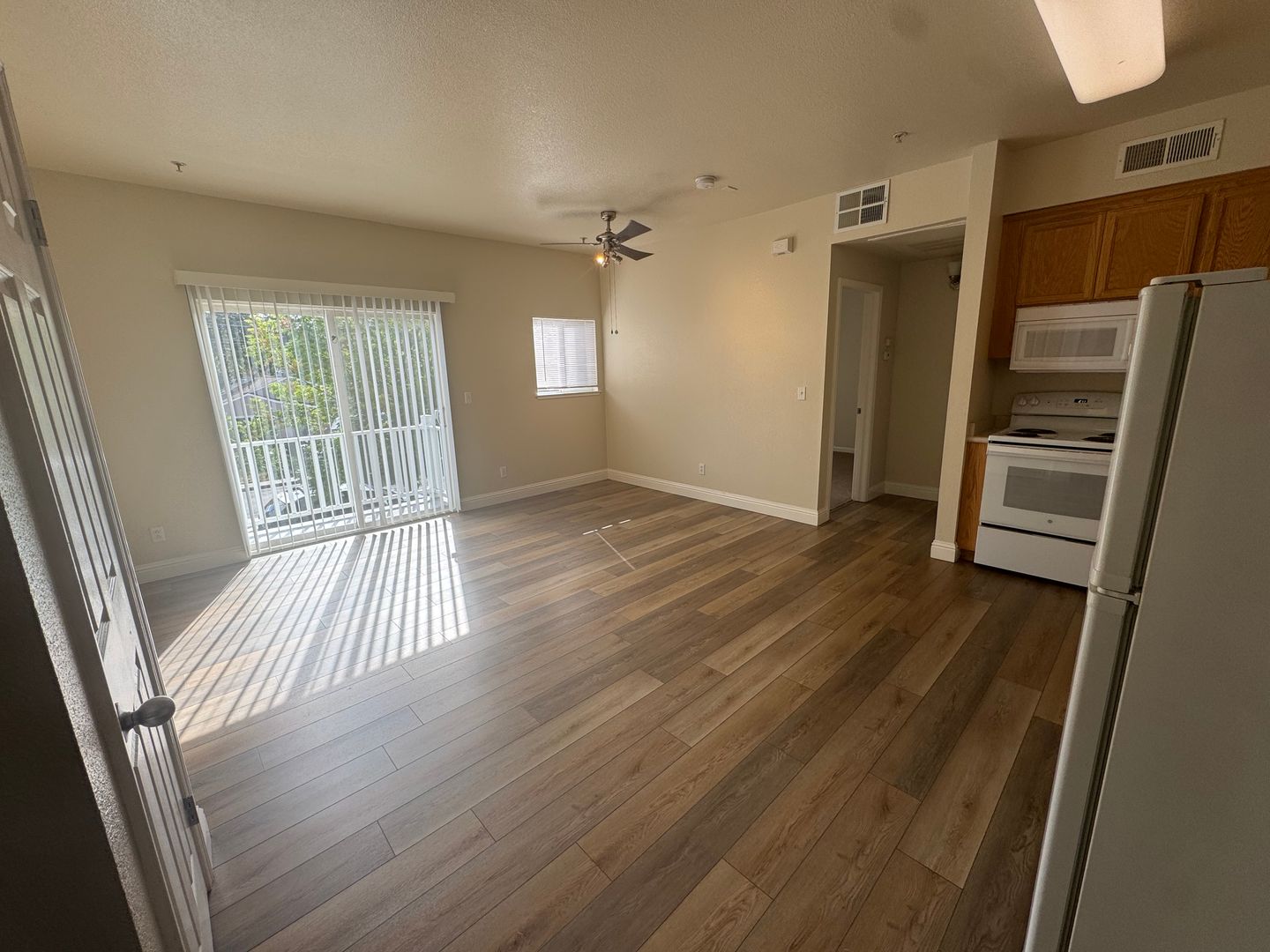 This 1 bedroom 1 bath upstairs unit has LVT flooring in the kitchen, living room and bathroom and fresh paint throughout! The apartment comes with one assigned covered parking space. Move in Ready! You will love its convenient location near shopping, bus and freeway access.