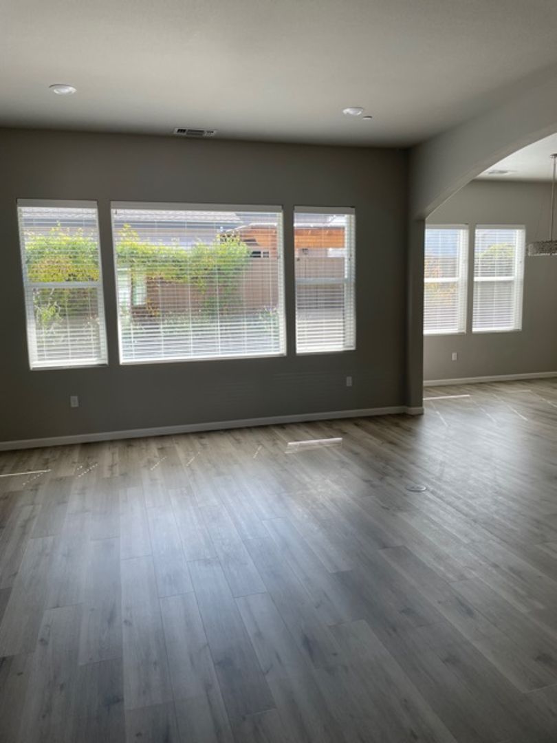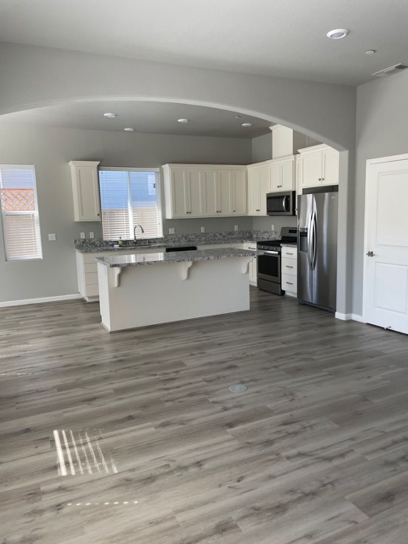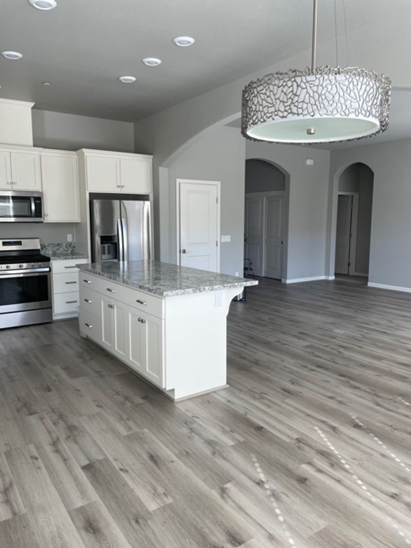 Come and see this lovely 3 bedroom 2 bath home on a quiet block in Coffey Park. An extremely livable floorplan with upgraded LVT floors and quartz counter tops. A large great room dividing the bedroom wings has an open kitchen with a beautiful quartz island and abundant storage. The kitchen has stainless steel appliances with a gas range. High ceilings throughout with lots of windows all with Graber 2 inch white faux wood blinds.