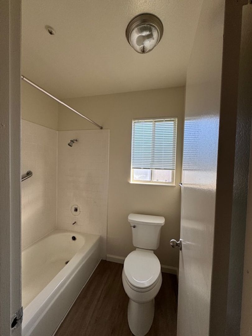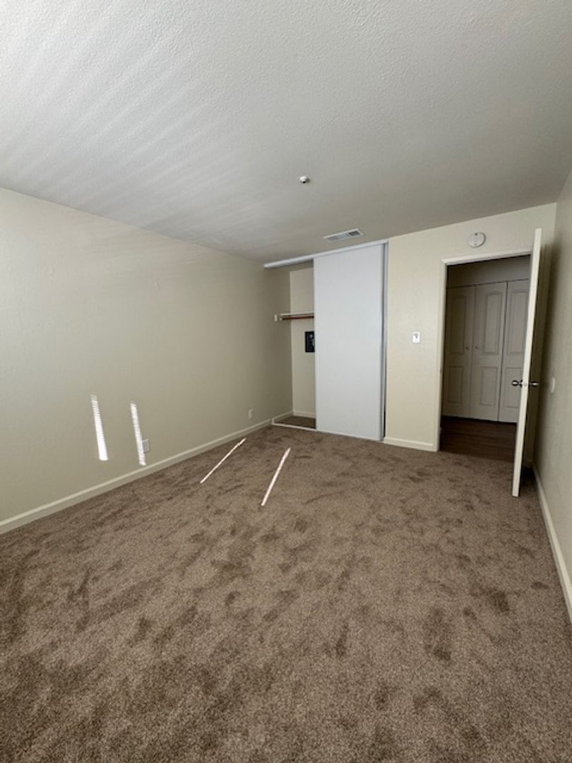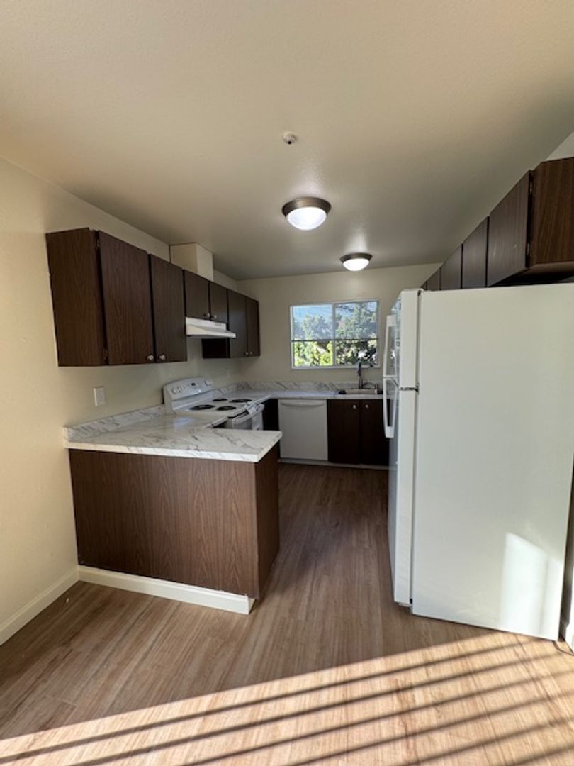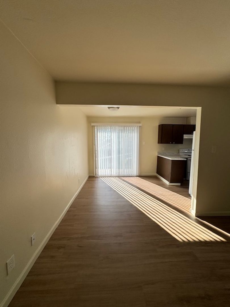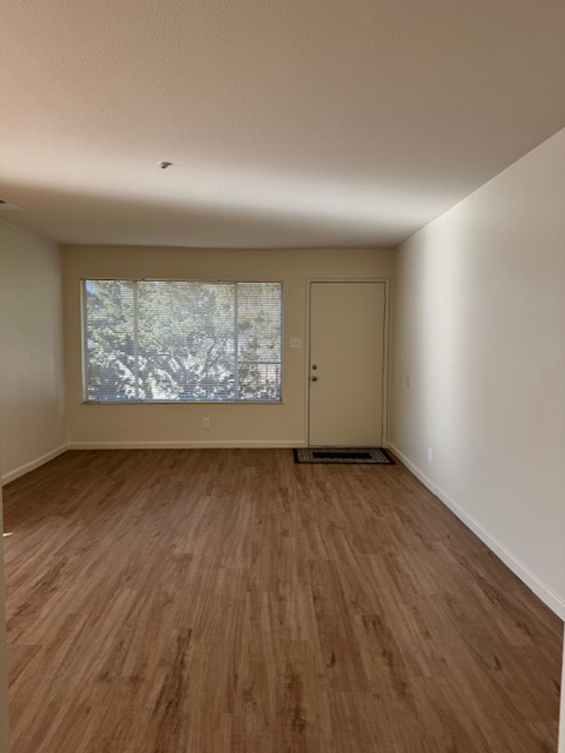 Come see this lovely large 2-bedroom 1 bath unit at the Santa Alicia Apartments! This unit has been updated with a new stove, refrigerator, new panel flooring and baseboards, new carpet in the bedroom, new window coverings, new sliding glass door and fresh paint throughout! There is an A/C unit in one bedroom, washer/dryer hookups, and a single car manual garage and parking for 2nd vehicle at the complex. This unit is an upper apartment above the garage area; no one lives below the unit.