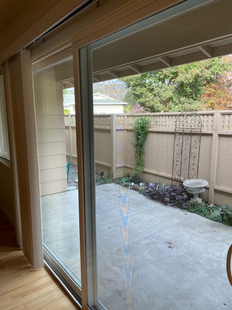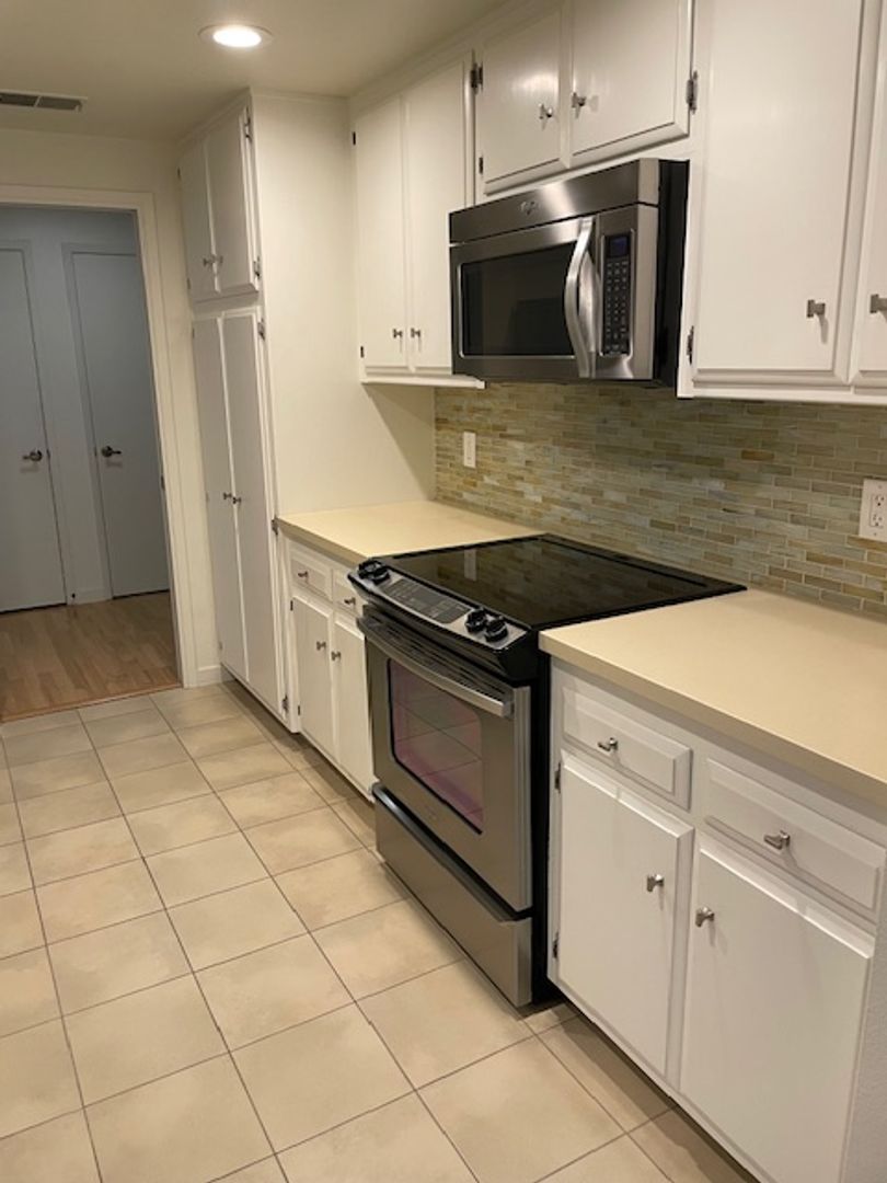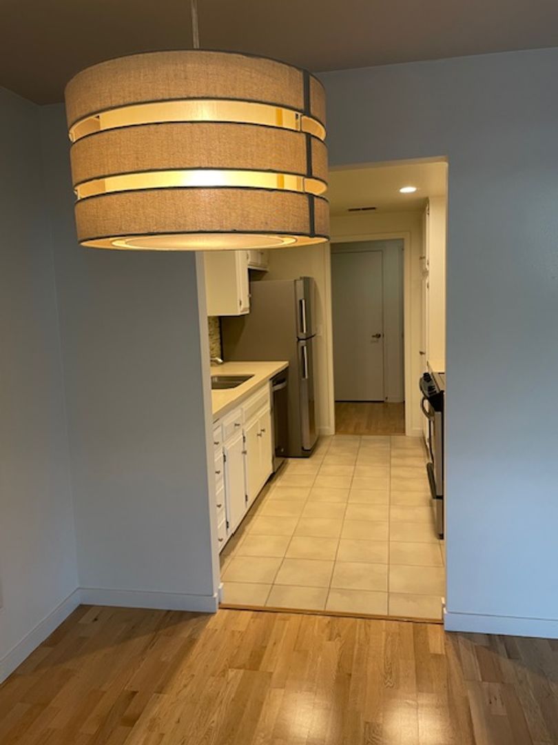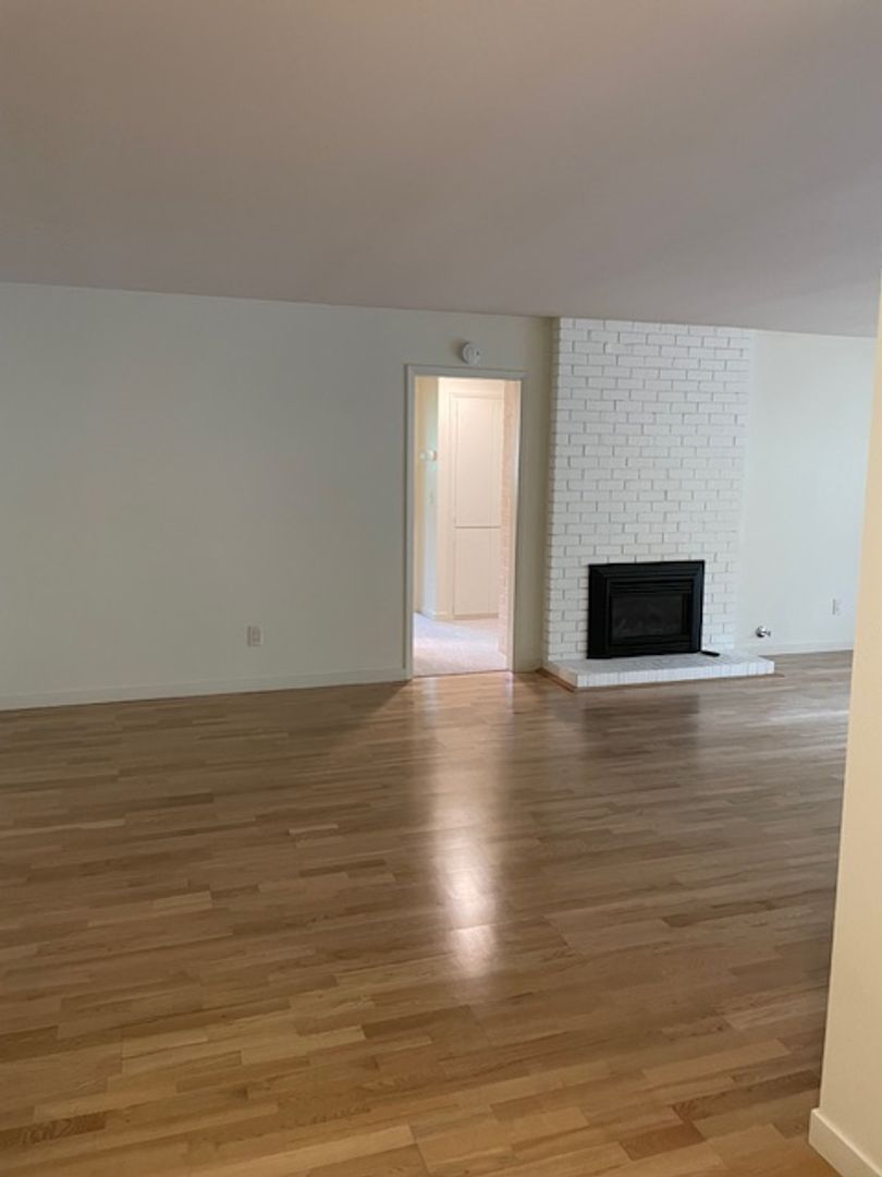 Come see the recently remodeled bathroom and kitchen with attractive upscale tile and cabinetry. All stainless-steel appliances complete the look. The unit has hardwood flooring throughout with carpets in the bedrooms. The remote controlled gas fireplace adds warmth and ambiance. This unit also offers air conditioning. Access your own private patio area from the living room and dining area. Large windows make the unit bright and welcoming.