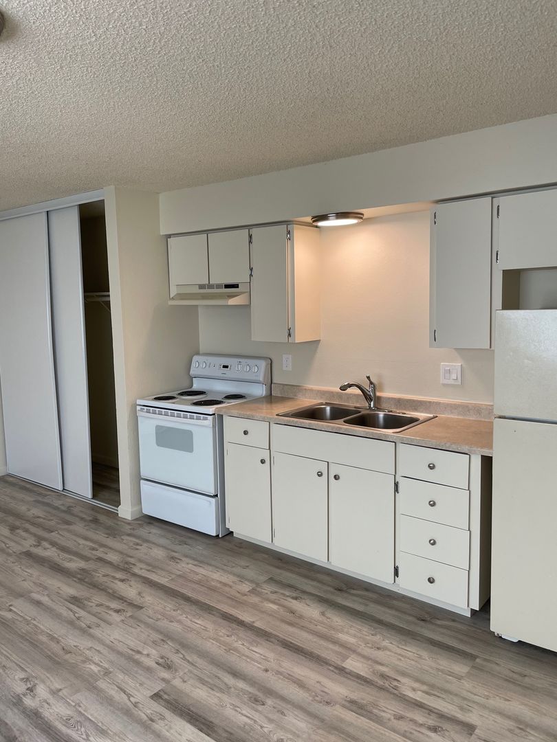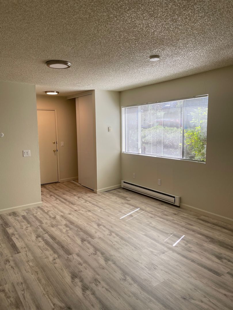 We are offering a lovely downstairs 1 bath studio apartment. This apartment has newer blinds and newer LVT flooring. The unit comes with assigned covered parking and access to additional storage near your parking space. Additional uncovered parking is available first come first serve and on-street parking is also available. Laundry facilities are on-site for your convenience. Enjoy access to the lovely courtyard area with mature landscaping and an upgraded swimming pool which is open seasonally.