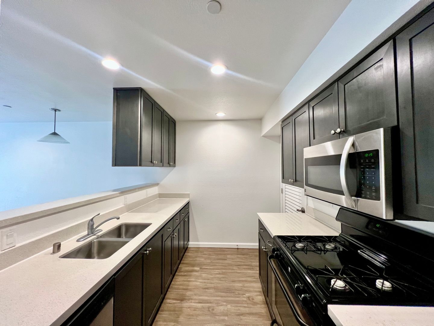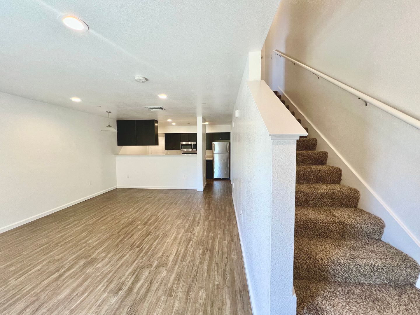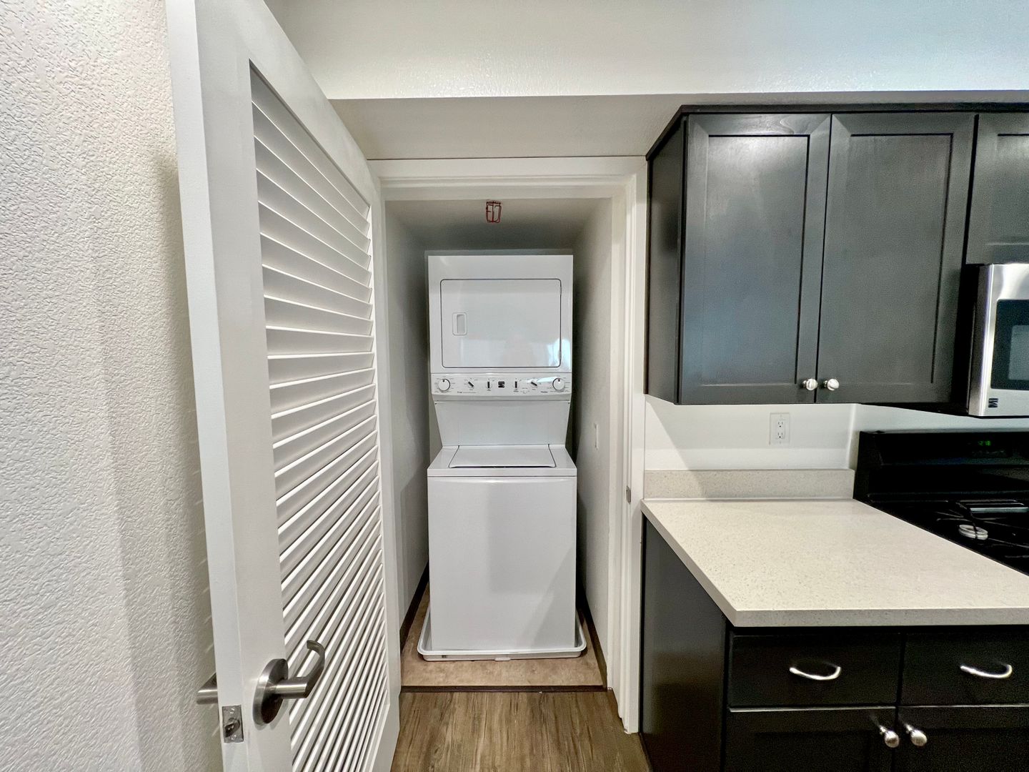 This two bedroom, one bath townhouse unit has large open living areas and exceptional lighting. It also features laminate wood flooring, Quartz countertops, all stainless steel appliances, gas stove, a built in microwave , on- demand hot water heater, a stacked washer/dryer in the unit, and large picture windows and extra storage. Move in Ready!