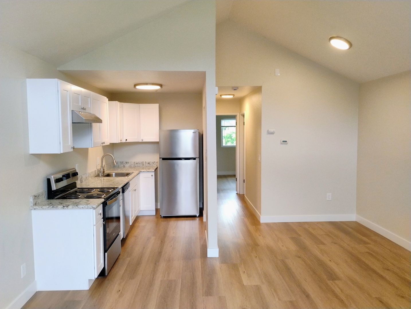 Come see this 1 bedroom, 1 bath upstairs unit located in Santa Rosa's desirable Rincon Valley area directly across from Oliver's Market. This unit has plank flooring, vaulted ceilings, granite countertops and stainless-steel appliances. Enjoy the convenience of on-site laundry facilities and assigned covered parking.