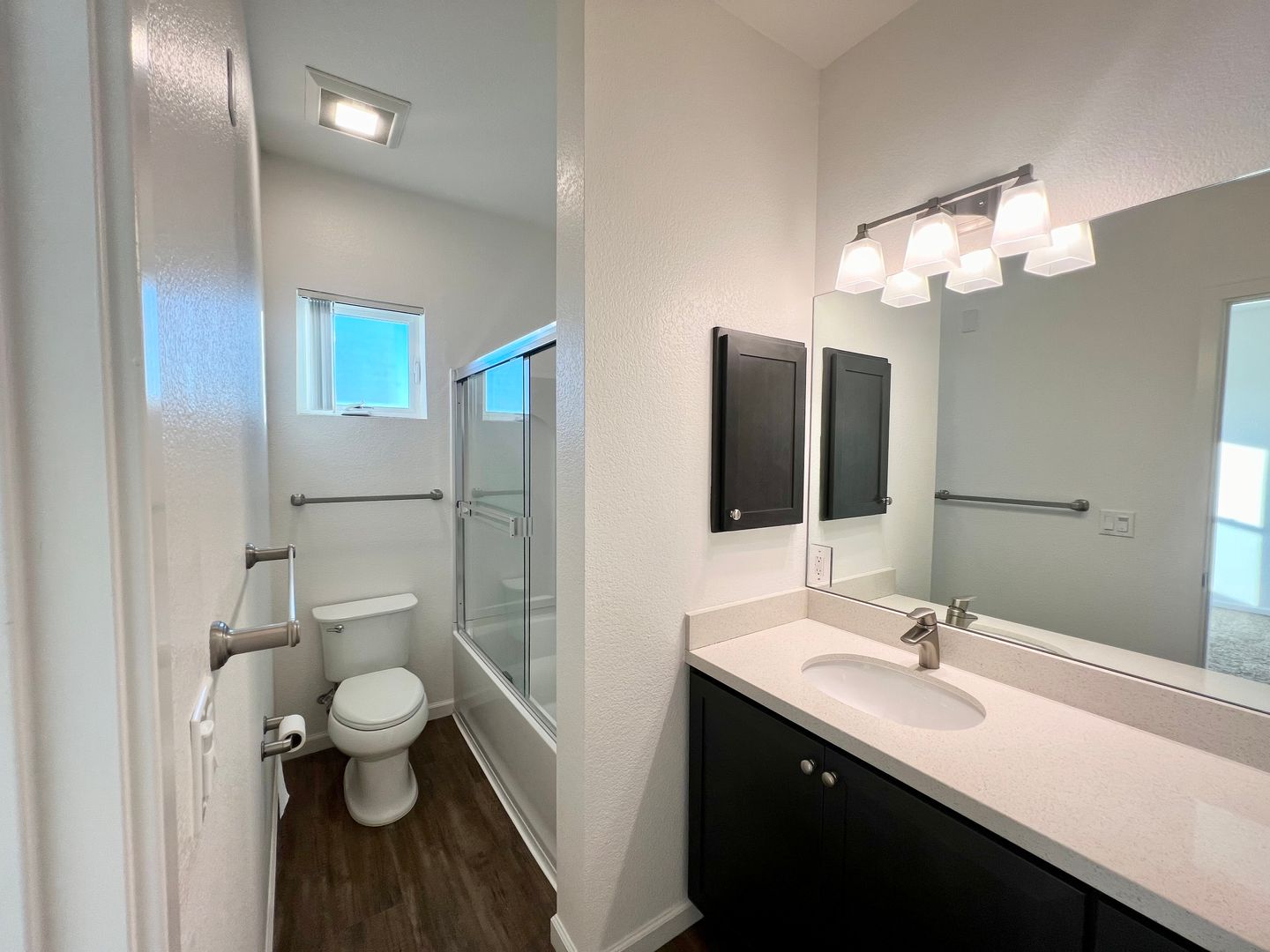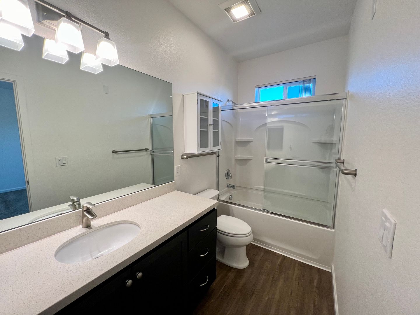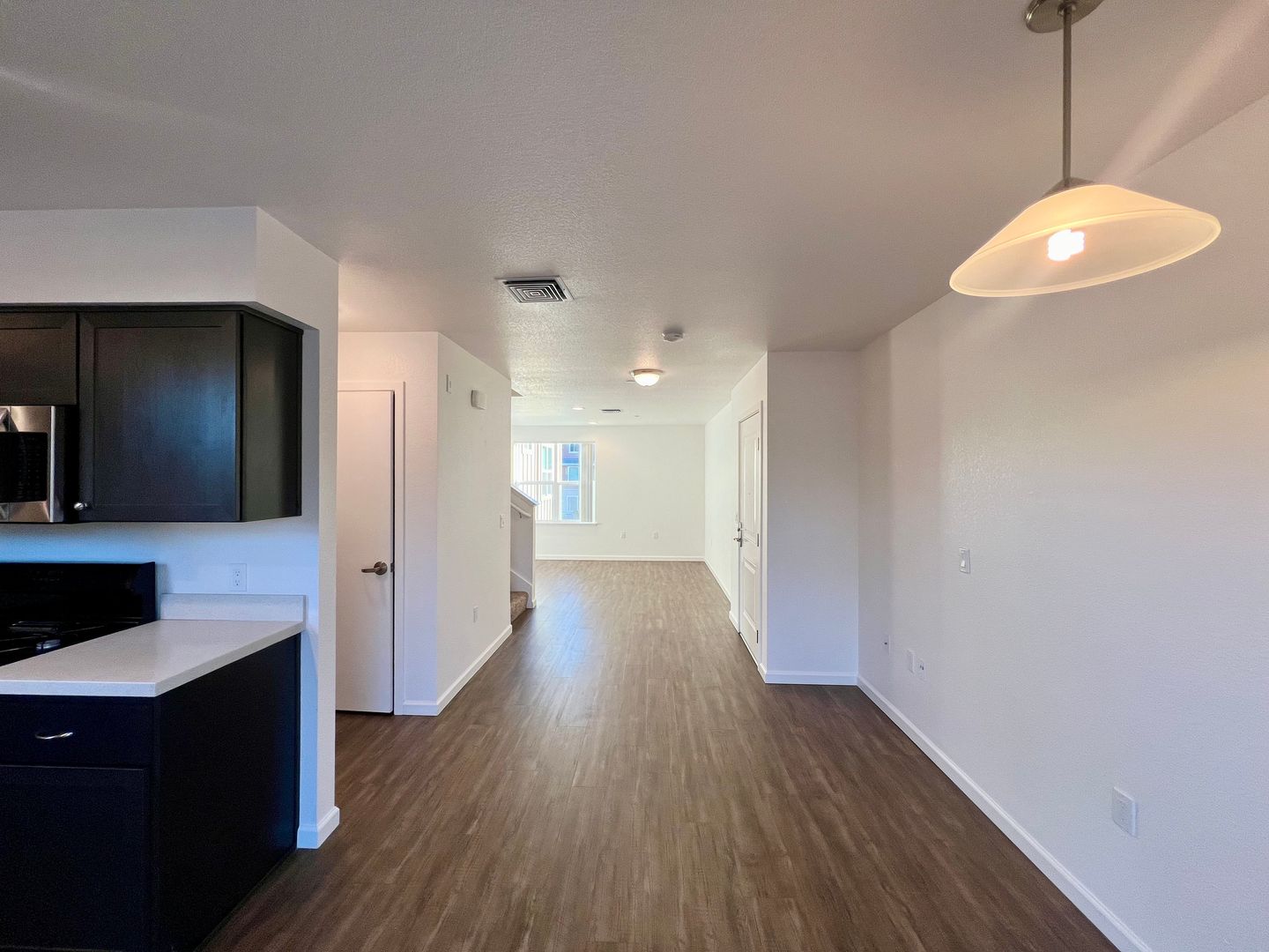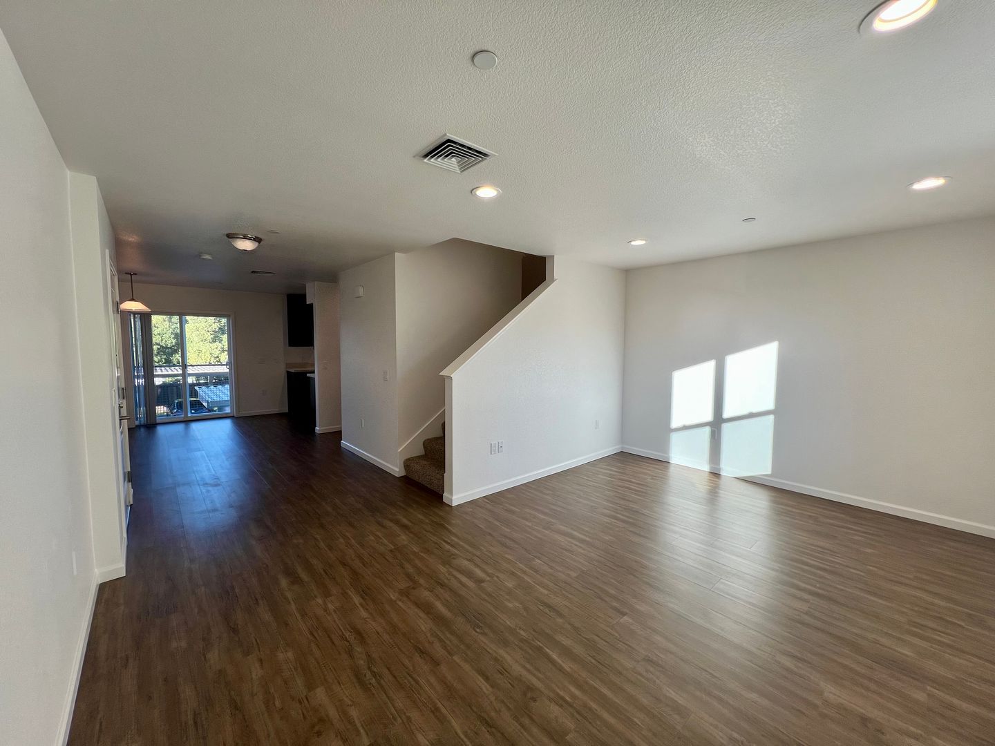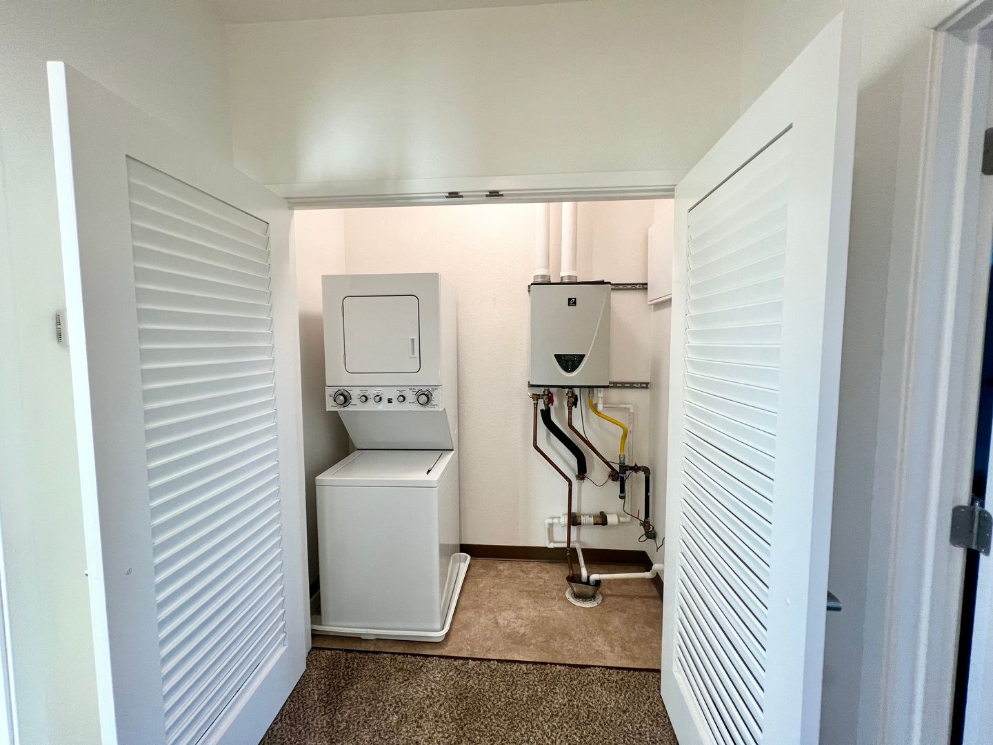 This two bedroom, two and a half bath townhouse unit has large open living areas and exceptional lighting. It features laminate wood flooring, quartz countertops, stainless steel appliances, a gas stove, a built in microwave, an on-demand hot water heater, a washer/dryer in the unit, and large picture windows and extra storage. Move in Ready!